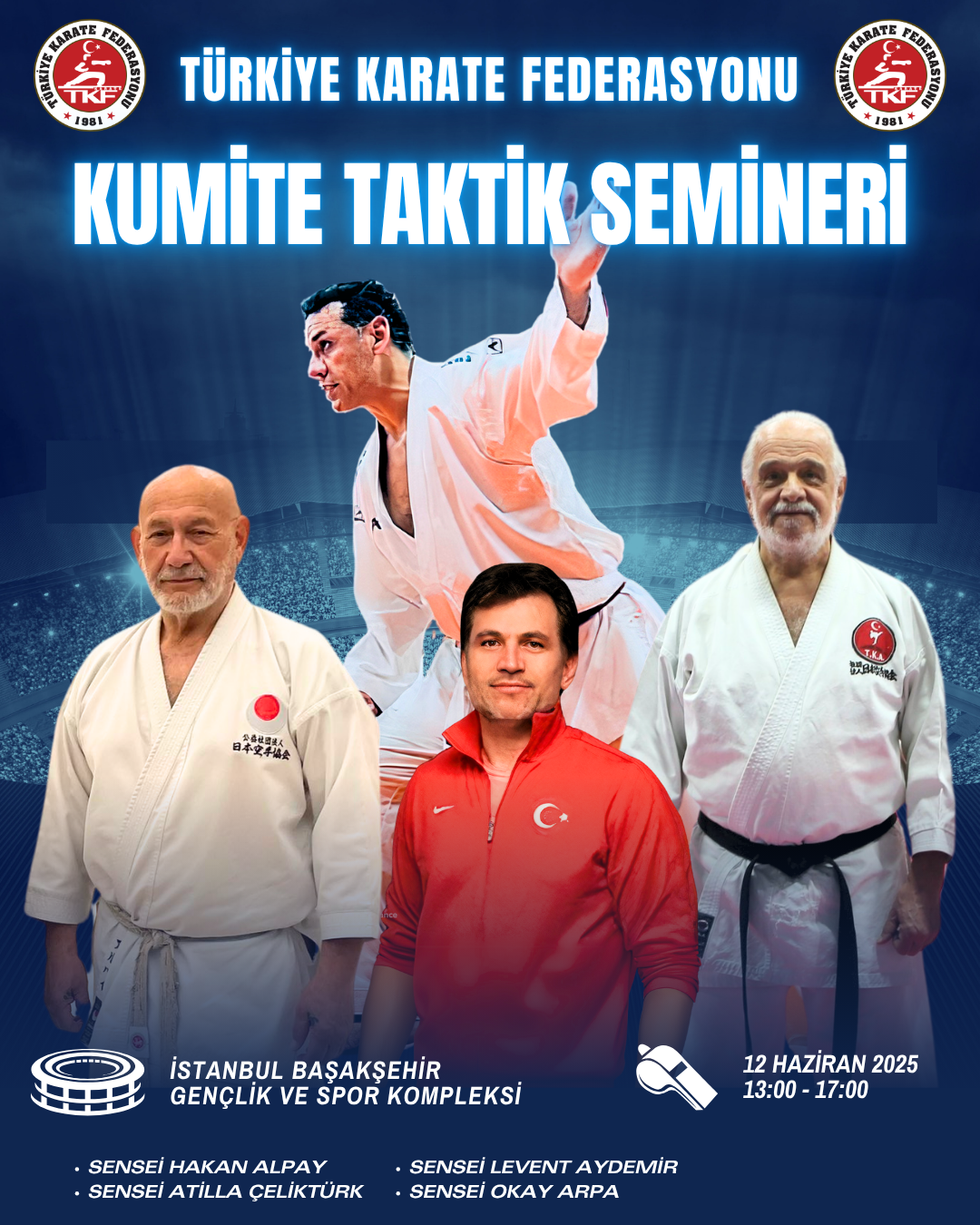 Türkiye Karate Federasyonu Kumite Taktik Semineri, 12 Haziran 2025 Perşembe günü 13:00 - 17:00 saatleri arasında İstanbul Başakşehir Gençlik ve Spor Kompleksinde düzenlenecektir.
